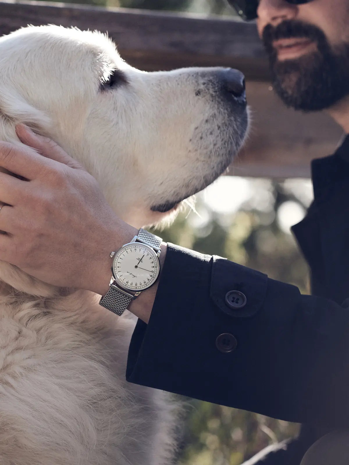 A classic 40mm case timepiece with an elegant 60s retro look, powered by a 24-hour precision movement.
